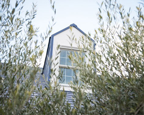 代官坂上にある閑静な住宅街の一角、入り口から庭園に一歩足を踏み入れると、手入れの行き届いた芝生と、南仏をイメージする 白い洋館が目に飛び込んでくる。エントランスに続く歩道を歩くと、50本ほどの大きく育ったオリーブが庭園を囲み、風を受けてはやさしく揺らぎ、陽光の恵みを受けては燦々と光り輝き、心地よい 安らぎへといざなう。